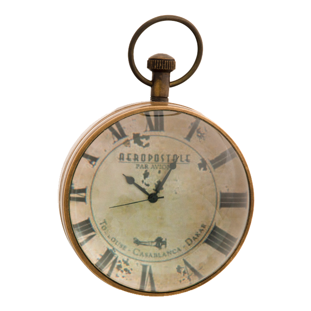탁상시계로 변신한 회중시계, 확대된 다이얼과 바늘을 보여주는 볼록한 광학 유리 돋보기등
